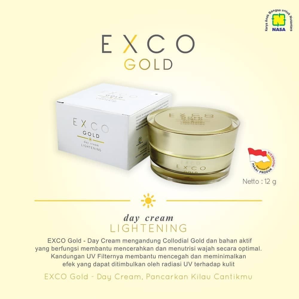 Exco Gold Day Cream merupakan produk terobosan terbaru yang diproduksi dan didistribusikan langsung oleh PT. Natural Nusantara. Dengan menggunakan teknologi nano terbaru yang mengandung Collodial Gold dan bahan aktif lainnya, Exco Gold dapat membantu mencerahkan sekaligus menutrisi kulit wajah Anda secara optimal.